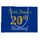 Elegant, Blue, Faux Gold 20th Birthday + Name Large Gift Bag
