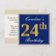 Elegant, Blue, Faux Gold 24th Birthday + Name Invitation