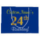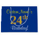 Elegant, Blue, Faux Gold 24th Birthday + Name Large Gift Bag