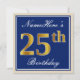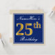 Elegant, Blue, Faux Gold 25th Birthday + Name Invitation