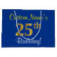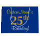 Elegant, Blue, Faux Gold 25th Birthday + Name Large Gift Bag