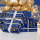 This simple and elegant wrapping paper design features a personalised message like "NameHere’s 25th Birthday" (with the "25th" having a faux/imitation gold-like colouring look) within a blue-coloured square area featuring a simple border outline. The name is in an elegant white-coloured script-like text, and can be personalised. Wrapping paper like this could perhaps be used when wrapping birthday gifts for somebody who is celebrating their twenty fifth birthday. [~Z0000221]