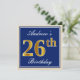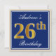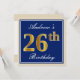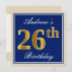 Elegant, Blue, Faux Gold 26th Birthday + Name Invitation