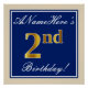 Elegant, Blue, Faux Gold 2nd Birthday; Custom Name Poster