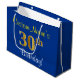 Elegant, Blue, Faux Gold 30th Birthday + Name Large Gift Bag