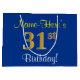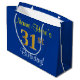 Elegant, Blue, Faux Gold 31st Birthday + Name Large Gift Bag