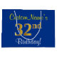 Elegant, Blue, Faux Gold 32nd Birthday + Name Large Gift Bag