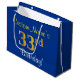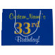 Elegant, Blue, Faux Gold 33rd Birthday + Name Large Gift Bag