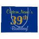 Elegant, Blue, Faux Gold 39th Birthday + Name Large Gift Bag