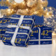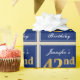 This simple and elegant wrapping paper design features a personalised message like "Jennifer’s 42nd Birthday" (with the "42nd" having a faux/imitation gold-like colouring look) within a blue-coloured square area featuring a simple border outline. The name is in an elegant white-coloured script-like text, and can be customised. Wrapping paper like this could perhaps be used when wrapping birthday gifts for somebody who is celebrating their forty second birthday. [~Z0000221]