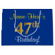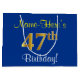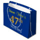 Elegant, Blue, Faux Gold 47th Birthday + Name Large Gift Bag
