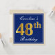 Elegant, Blue, Faux Gold 48th Birthday + Name Invitation