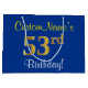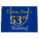 Elegant, Blue, Faux Gold 53rd Birthday + Name Large Gift Bag