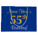 Elegant, Blue, Faux Gold 55th Birthday + Name Large Gift Bag