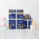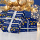 This simple and elegant wrapping paper design features a personalised message like "Alexandra’s 56th Birthday" (with the "56th" having a faux/imitation gold-like colouring look) within a blue-coloured square area featuring a simple border outline. The name is in an elegant white-coloured script-like text, and can be customised. Wrapping paper like this could perhaps be used when wrapping birthday gifts for somebody who is celebrating their fifty sixth birthday. [~Z0000221]