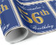 Elegant, Blue, Faux Gold 56th Birthday + Name Wrapping Paper