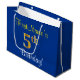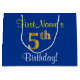 Elegant, Blue, Faux Gold 5th Birthday; Custom Name Large Gift Bag
