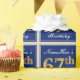 This simple and elegant wrapping paper design features a personalised message like "NameHere’s 67th Birthday" (with the "67th" having a faux/imitation gold-like colouring look) within a blue-coloured square area featuring a simple border outline. The name is in an elegant white-coloured script-like text, and can be customised. Wrapping paper like this could perhaps be used when wrapping birthday gifts for somebody who is celebrating their sixty seventh birthday. [~Z0000221]