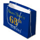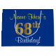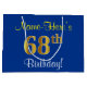 Elegant, Blue, Faux Gold 68th Birthday + Name Large Gift Bag