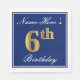 Elegant Blue, Faux Gold 6th Birthday + Custom Name Napkin