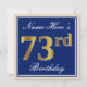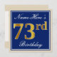Elegant, Blue, Faux Gold 73rd Birthday + Name Invitation