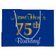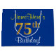 Elegant, Blue, Faux Gold 75th Birthday + Name Large Gift Bag