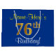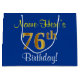 Elegant, Blue, Faux Gold 76th Birthday + Name Large Gift Bag