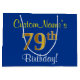 Elegant, Blue, Faux Gold 79th Birthday + Name Large Gift Bag