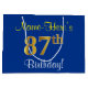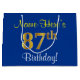 Elegant, Blue, Faux Gold 87th Birthday + Name Large Gift Bag