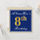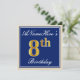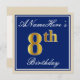 Elegant, Blue, Faux Gold 8th Birthday; Custom Name Invitation