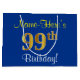 Elegant, Blue, Faux Gold 99th Birthday + Name Large Gift Bag