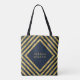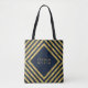 Elegant blue tote bag featuring chic faux gold square lines pattern that you can personalise with your name. Great as gifts for family and friends or for yourself.