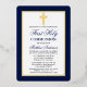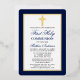 Elegant Navy Blue and Gold First Holy Communion Invitation with Cross. Gold Foil Frame. Gold Foil Cross. Rounded Edges. Photo Back.