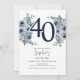 Elegant Blue Floral 40th Birthday Invitation