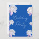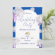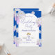 A graceful wedding invitation featuring a soft blue arch design adorned with delicate white floral accents and gold rings detail. Perfect for couples seeking a refined and romantic style, this fully customizable template allows you to easily personalize names, date, time, and location for your special day.