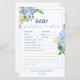 Elegant Blue Floral Baby Shower Game Printed
