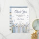 Express your gratitude with this beautifully designed thank-you card! Featuring watercolor blue florals, vintage books, and soft butterflies, it’s the perfect way to send warm wishes after a memorable baby shower.