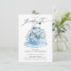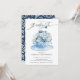 Beautiful blue floral bouquet in a light blue tea cup set on a navy blue background for a birthday tea party. Flip our invite over to view a coordinating floral back for an extra special touch.