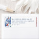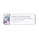 This return address label features a classic and elegant design with a rectangular layout, framed by intricate floral patterns of blue roses and red berries on either side. The color palette includes deep navy blue, bright red, and various shades of green against a crisp white background, creating a sophisticated and formal look. The typography is clean and structured, using bold serif fonts for the names and address, ensuring readability and a polished appearance. Perfect for formal announcements or invitations, this label exudes refined grace and understated luxury.