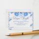This elegant design features a watercolor Victorian floral motif showcasing delicate blue and white chinoiserie-style elements, including a vintage bow. Stylish calligraphy is paired with classic serif fonts.