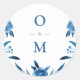 Elegant blue floral Chinoiserie Wedding monogram Classic Round Sticker
