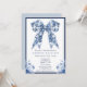 Celebrate the arrival of your little gentleman with this timelessly elegant baby shower invitation. Featuring a stunning blue floral coquette bow adorned with intricate flower details, this design beautifully blends classic sophistication with a modern touch. Inspired by the toile chinoiserie aesthetic, the delicate floral motifs and soft blue palette exude an air of refinement, perfect for welcoming your bundle of joy in style. Printed on high-quality cardstock, this invitation is ideal for parents who appreciate classic elegance, vintage-inspired charm, and a chic modern update to traditional designs. Fully customisable, this invitation allows you to personalise the event details for a truly unique celebration.