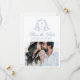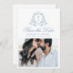 Elegant Blue Floral Crest Monogram Photo Wedding Save The Date