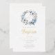 Elegant Blue Floral Cross Boy Baptism Foil Invitation.