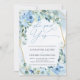 Elegant Blue Floral Gold Geometric She Said Yes Invitation