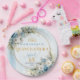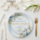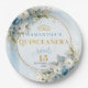 Elegant Blue Floral Gold Personalized Quinceañera Paper Plate