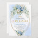 Elegant Blue Floral Gold Quinceañera Invitation