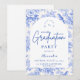 Elegant Blue Floral Graduation Party Invitation