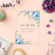 Modern blue watercolor flowers and greenery decorate this elegant floral save the date wedding acrylic invitation. Use the online template tools to change the font style, color and background to any of your choice.