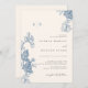Elegant Blue Floral Lace Ivory Wedding Invitation
